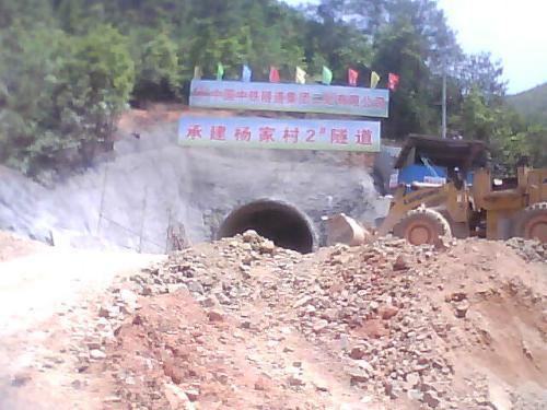 楊家村隧道為單洞對向行車公路隧道,起訖樁號為:K31+837~K33+433, 長 1596 米;屬長隧道。本隧道為曲線隧道。隧道進口(K31+837)路基設計高 程為 2722.23m,隧道出口(K33+433)路基設計高程為 2725.58m,縱向坡度為 雙向坡,坡度為 0.6%,-2.5%。