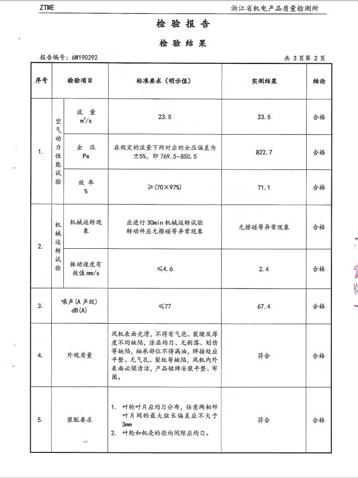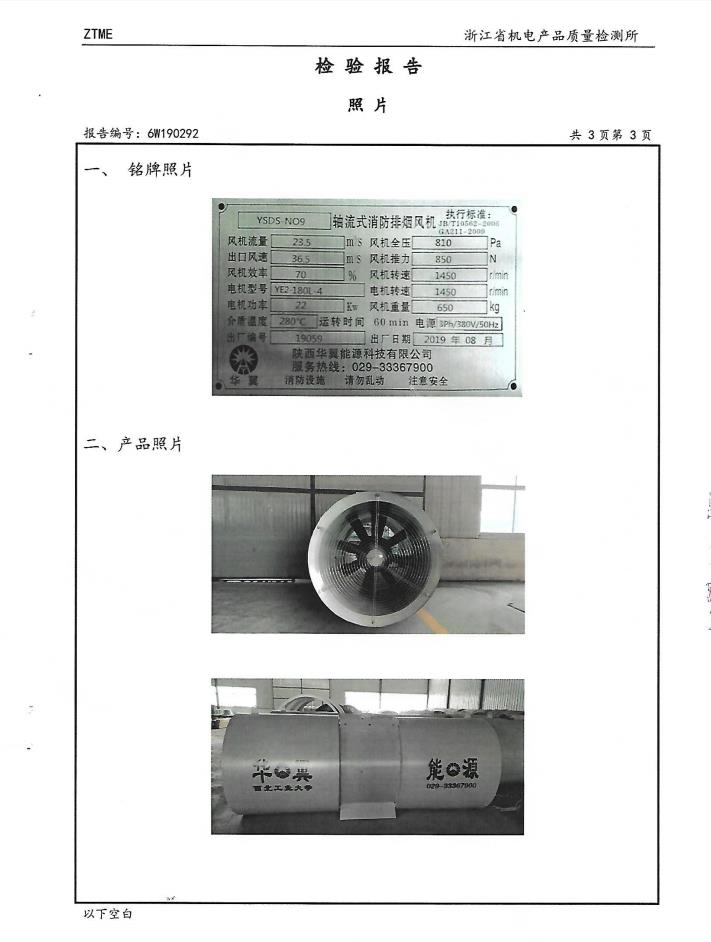 軸流式消防排煙風機檢驗報告